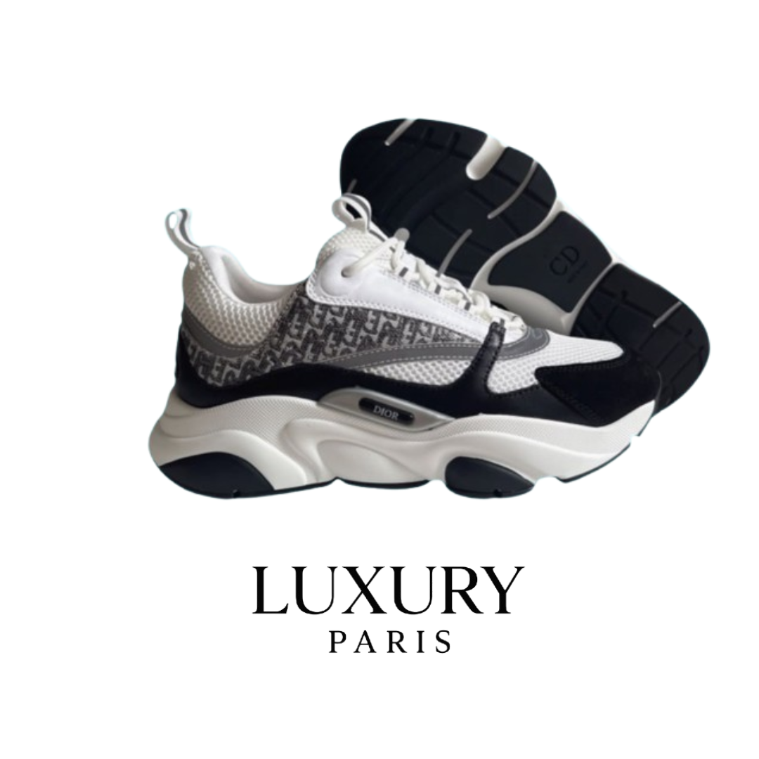 La Dior B22 Noir avec logo brodé incarne l’élégance discrète du luxe. Sa silhouette imposante et raffinée s’accompagne du fameux “DD” Dior minutieusement brodé, qui apporte une touche d’authenticité et d’exclusivité.